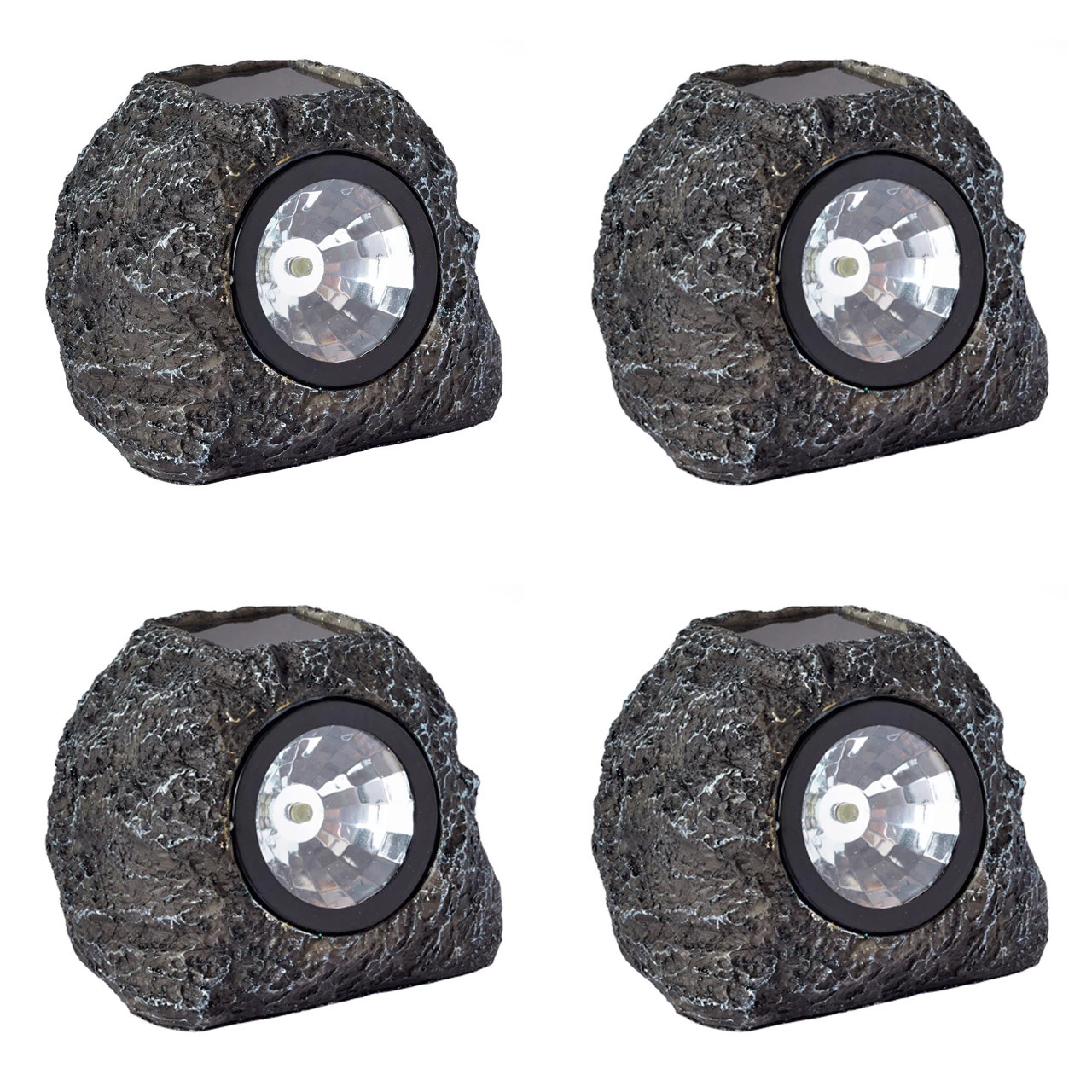 SuperBright Solar Powered LED Rock Spotlight 4-Pack White Granite Grey