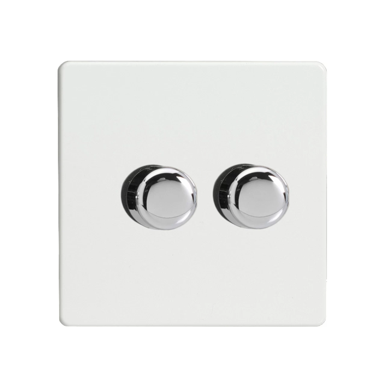 Varilight Screwless LED V-Pro 2 Gang Rotary Dimmer Switch Premium White