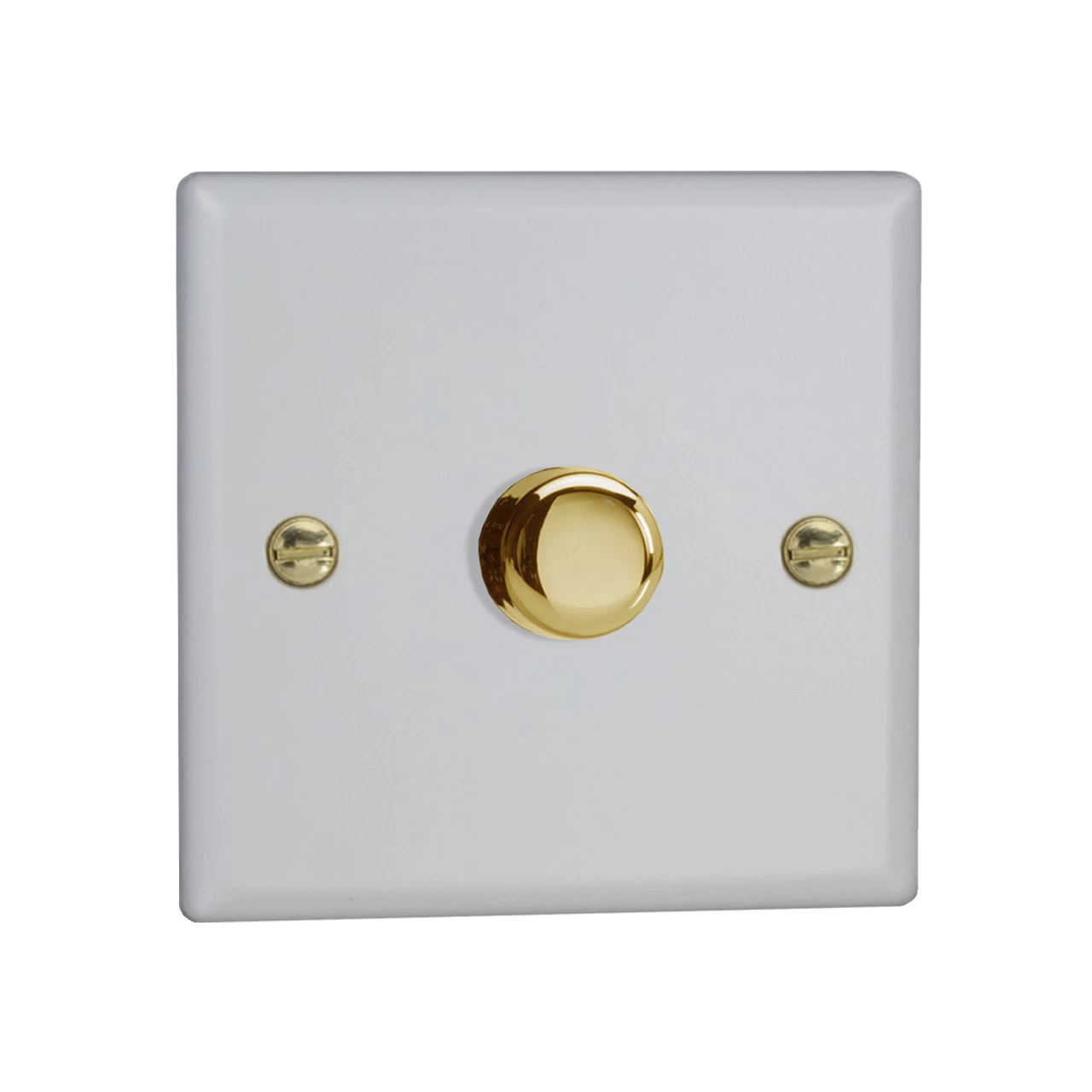 Varilight Vogue LED V-Pro 1 Gang Rotary Dimmer Switch White with Brass Knob
