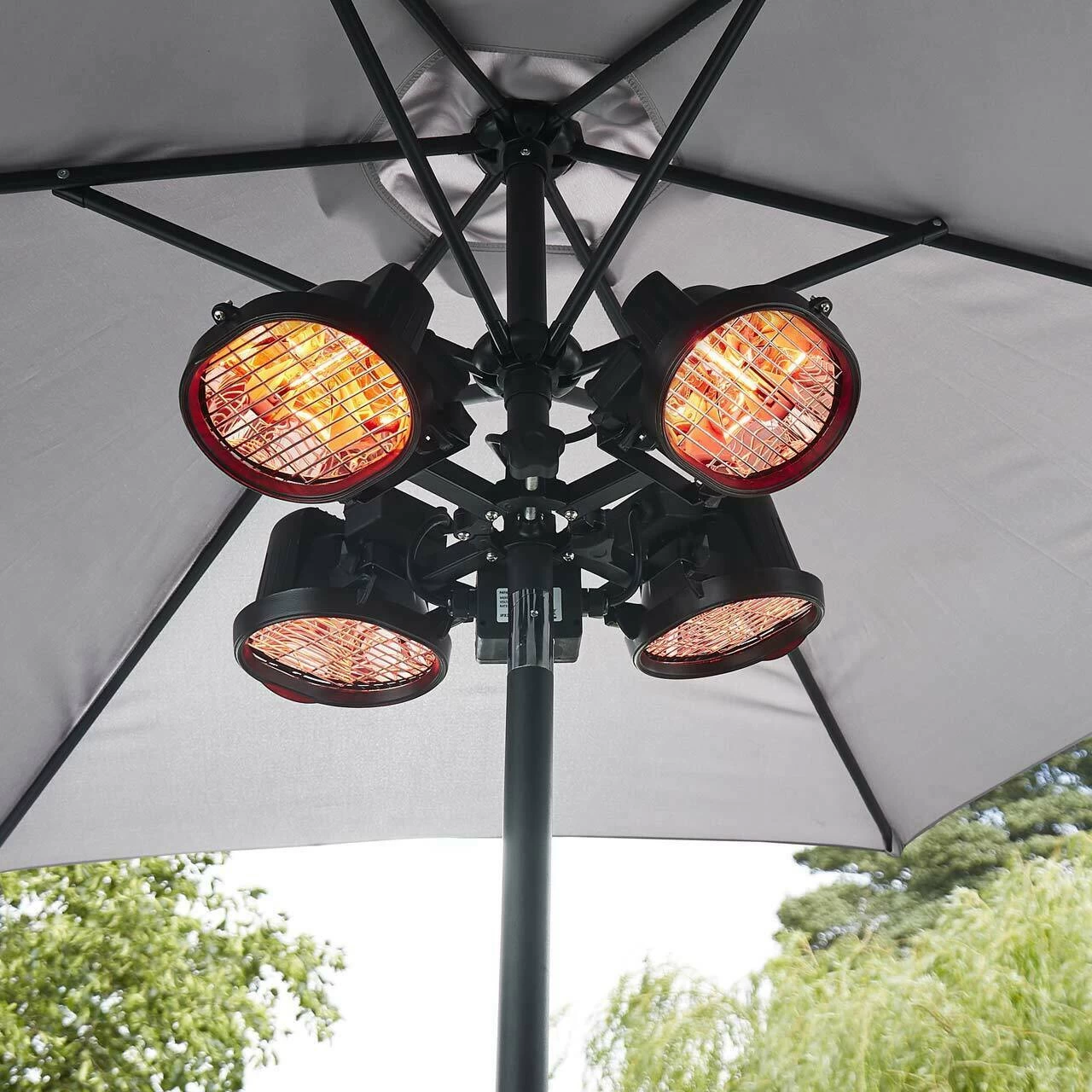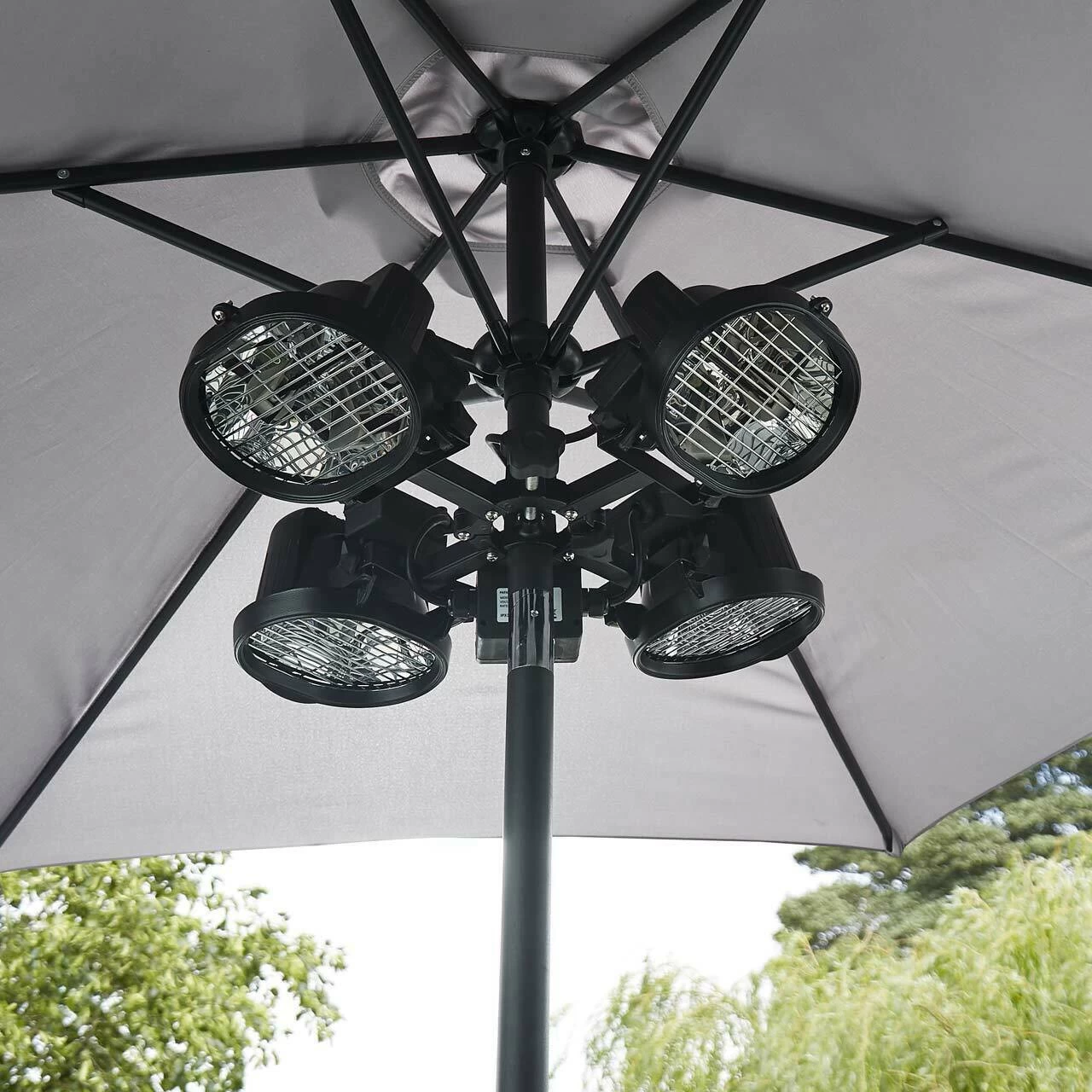This electric heater comes complete with an integrated parasol mount, allowing easy installation.